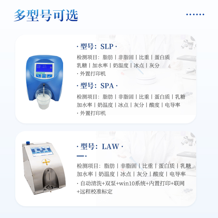 快速乳成品分析仪是专门用于对液态乳制品进行理化方面的多指标分析和检测的仪器设备。它们具有多种功能和参数测量选项,以评估乳制品的质量和营养价值。