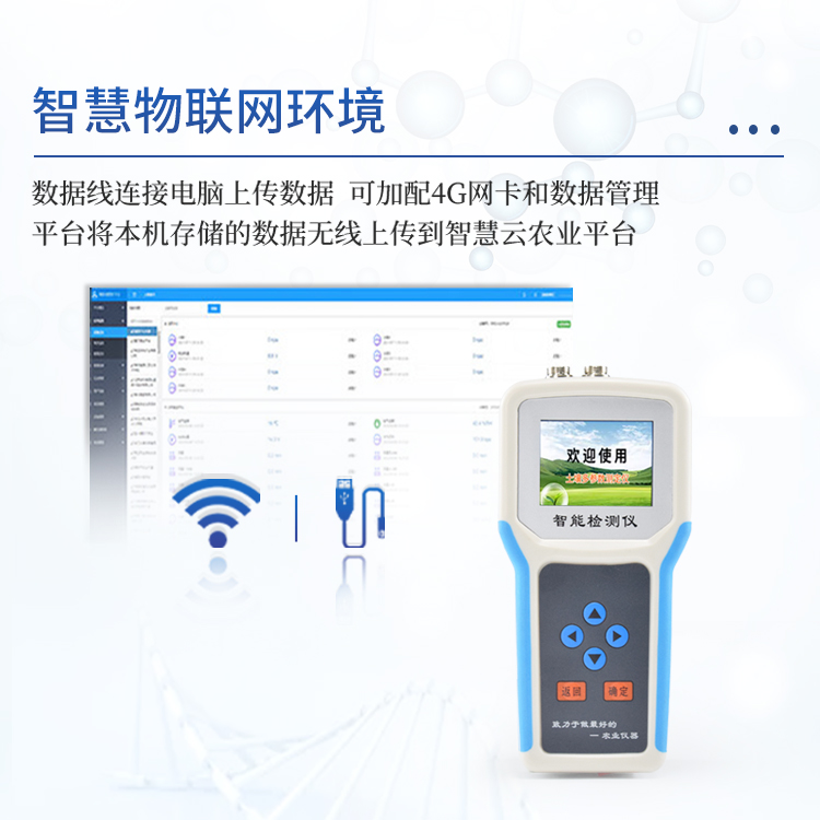 7、仪器配备4G联网功能数据管理平台,将本机存储的被测点环境因子测量历史数据无线上传到智慧云农业平台,方便用户进行数据管理和长期分析。