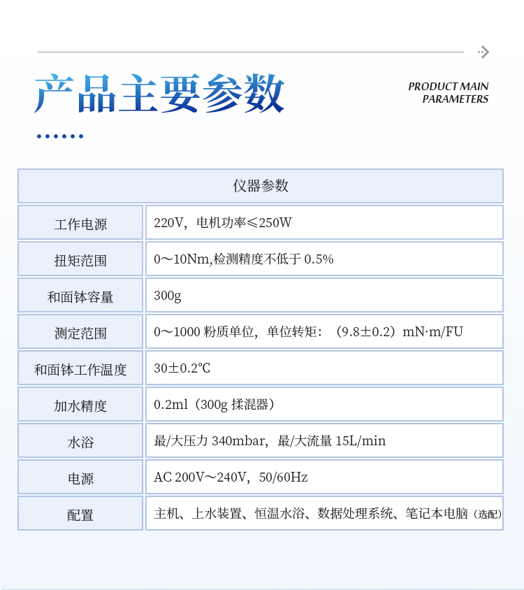 7、仪器指标与性能符合国家标准《GBT35943-2018 粮油机械》、《GBT14614-2019 粮油检验小麦粉面团流变学特性测试粉质仪法》并参与该标准的制定。