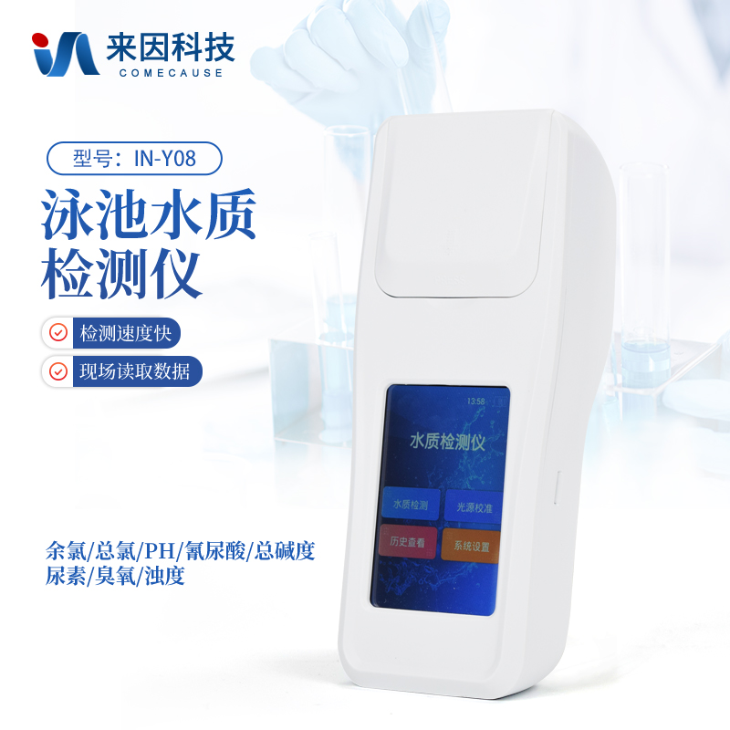 IN-Y08水质检测仪是一款适用于游泳场馆、户内外游泳池、水上乐园、温泉浴池、等领域的检测仪,配合快速显色检测试剂,可“快速、简单、准确、稳定”进行测量,拥有精美的外观造型,简单的操作界面,准确的检测系统,帮助用户获得精细的数据,可更准确、有效的分析水体状况,提前预防养殖风险,及时避免损失。