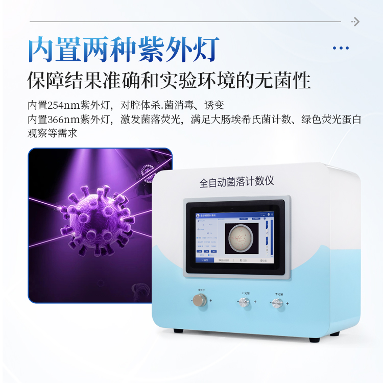 本产品是一款集图像采集、数据处理与统计于一体的自动菌落计数,广泛应用于食品、药品、化妆品、环境监测、医疗卫生、科研院校等领域的菌落计数。该仪器采用先进的数字图像处理技术,具备紫外杀菌功能,可实现对培养皿中菌落的快速、准确、全自动计数,显著提升实验效率,降低人工误差。