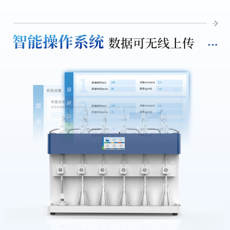 智能一体化蒸馏仪采用智能模块化设计:方法自定义设置保存/读取、开机自动调取使用,冷凝单元特殊定制蛇形冷凝管、智能终点控制防过量蒸馏、防倒吸保护,防干烧保护、实现了智能操作简单、自动蒸馏、美观实用、节能降耗、节省人工的同时为用户做样提高效率节约人员成本开销。