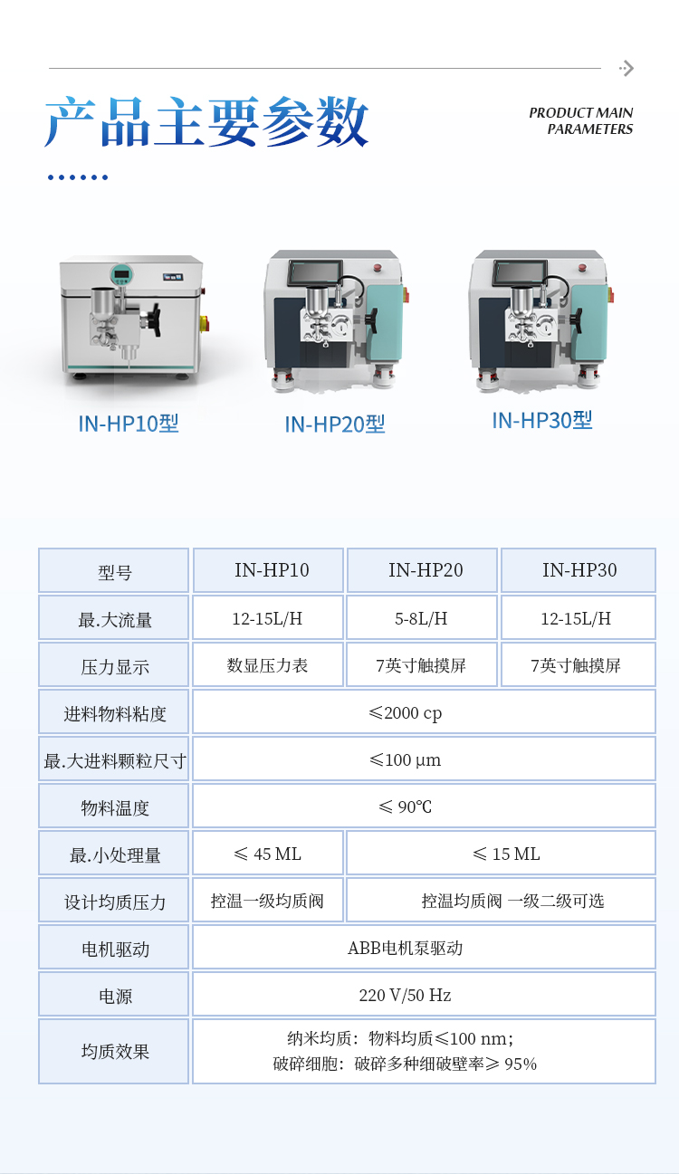 1.14、均质效果要求:纳米均质:可将物料均质≤100 nm;破碎细胞:能破碎多种细胞,破壁率≥ 95%.