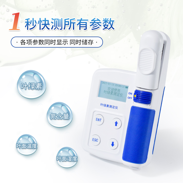 植物养分测定仪可以即时无损测量植物的叶绿素相对含量(单位 SPAD)或绿色程度、氮含量、叶面湿度、叶面温度,从而了解植物真实的硝基需求量并且了解土壤硝基的缺乏程度或是否过多地施加了氮肥。可以通过此款仪器来增加氮肥的利用率,并可保护环境。可广泛应用于农林相关科研单位和高校对植物生理指标的研究和农业生产的指导。