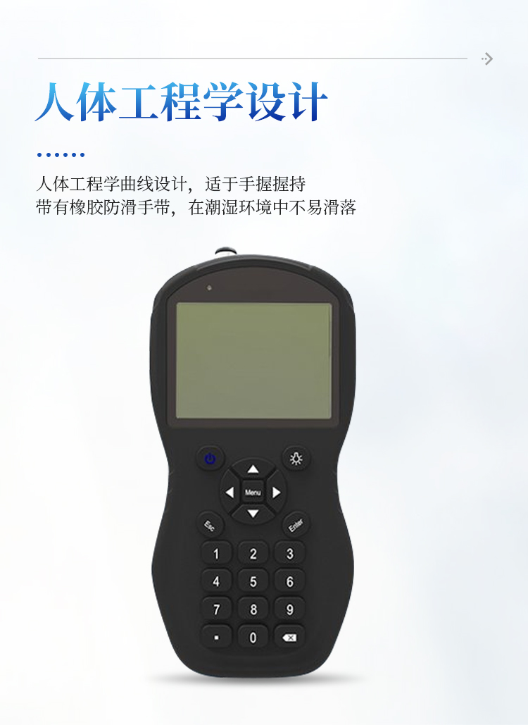 人体工程学曲线设计,适于手握握持,带有橡胶防滑手带,在潮湿环境中不易滑落;