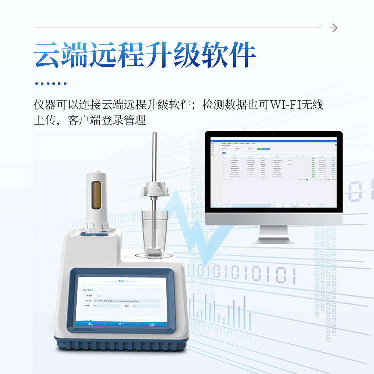 8.仪器可以连接云端远程升级软件;检测数据也可Wi-Fi无线上传,客户端登录管理。