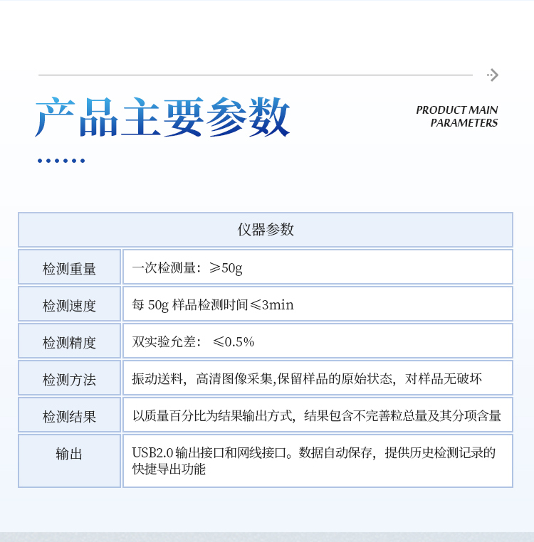 5、检测方法:振动送料,高清图像采集,保留样品的原始状态,对样品无破坏。
