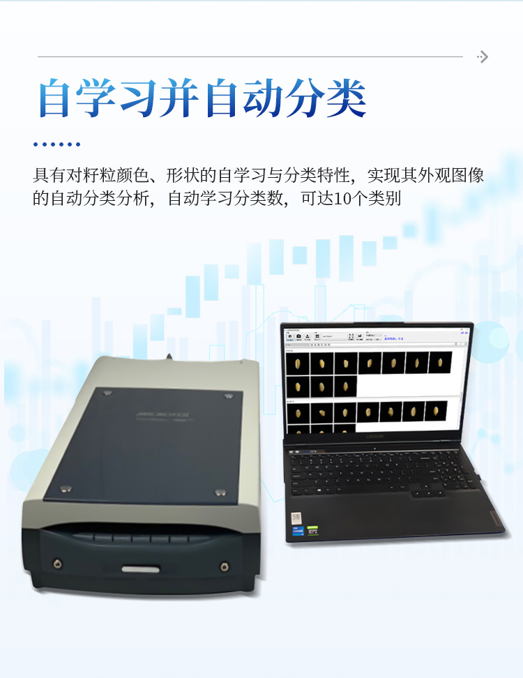 6.具有按**园林协会RHS2015比色卡的自动比色特性,根据正常籽粒与各类非常籽粒颜色、纹理、形状上的差异来自动识别与分类分析,具有对籽粒颜色、形状的自学习与分类特性,实现其外观图像的自动分类分析(自动学习分类数*多可达10个类别)