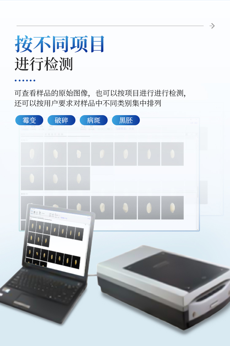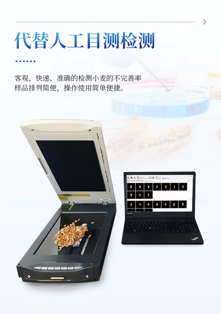 小麦不完善粒测定仪IN-MWS软件连接专用扫描仪,扫描出小麦正反两面的电子照片,通过软件识别自动对检测的小麦样品进行计数分类计算。从而获得整体小麦的分类品质。