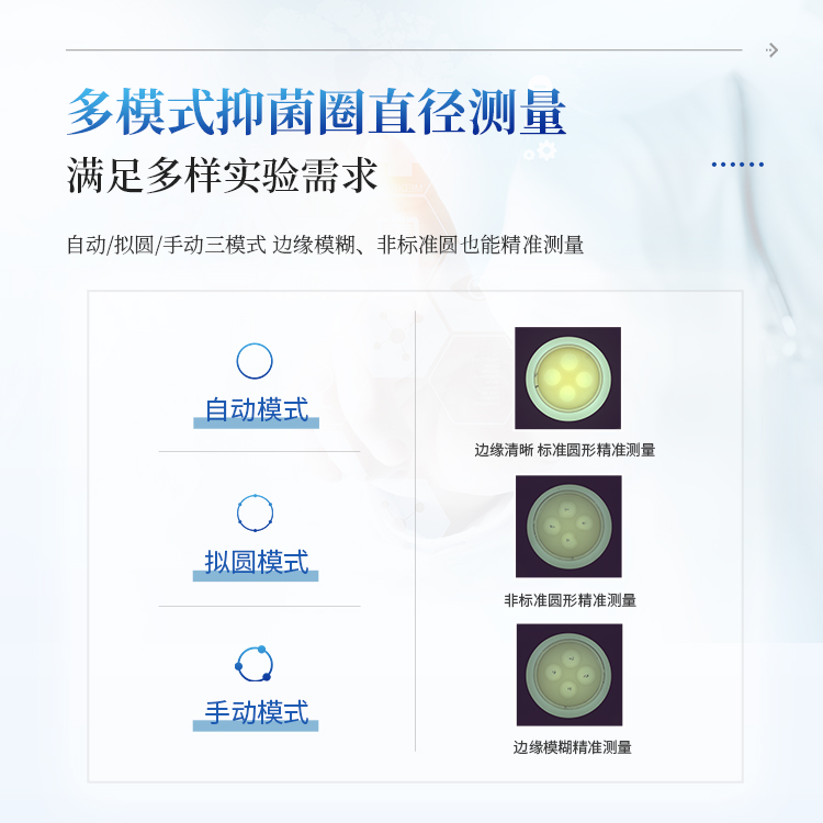 自动检测:基于抑菌圈轮廓的精确边缘检测,适合边缘清晰、标准圆形的抑菌圈 Ø